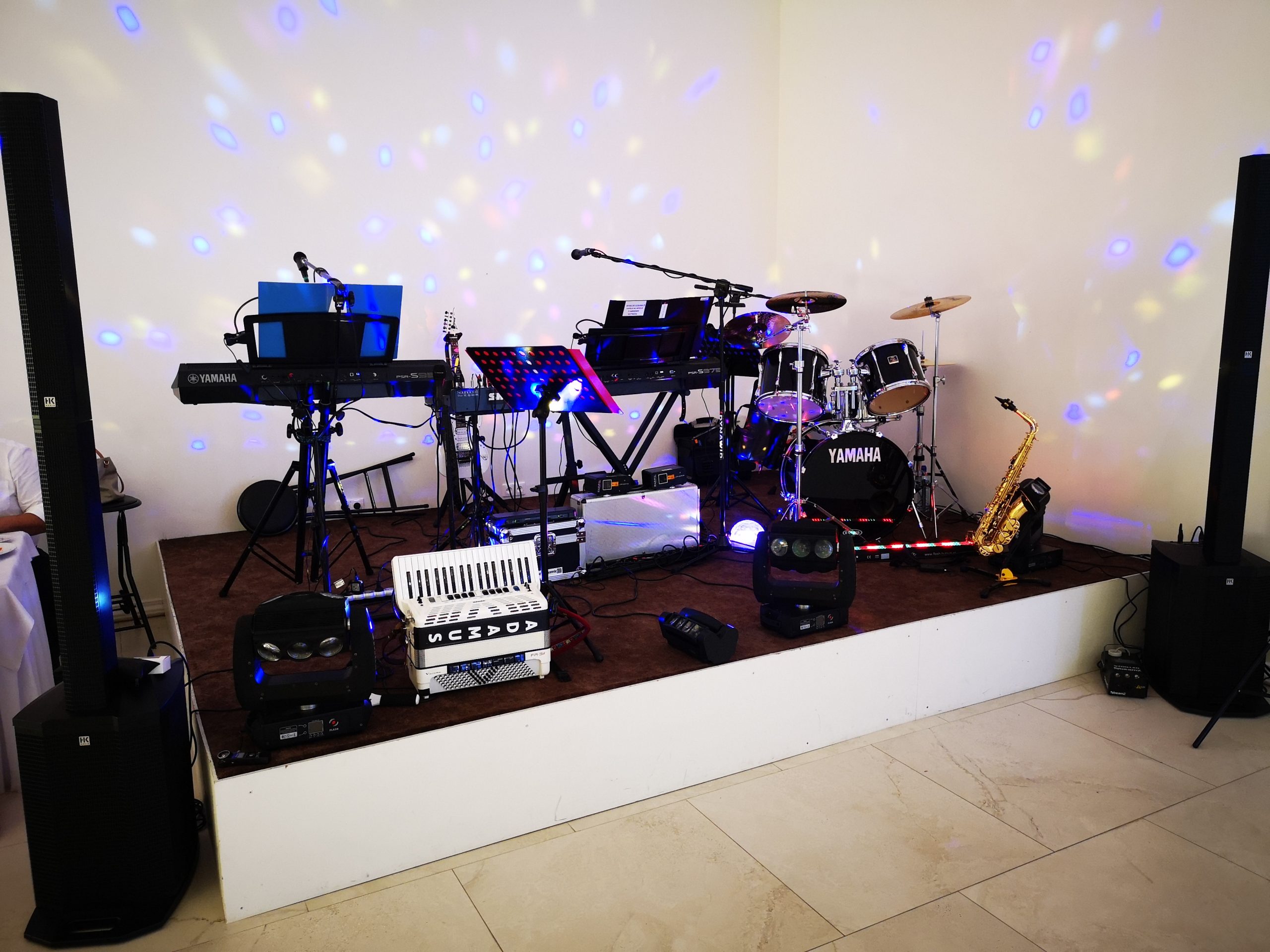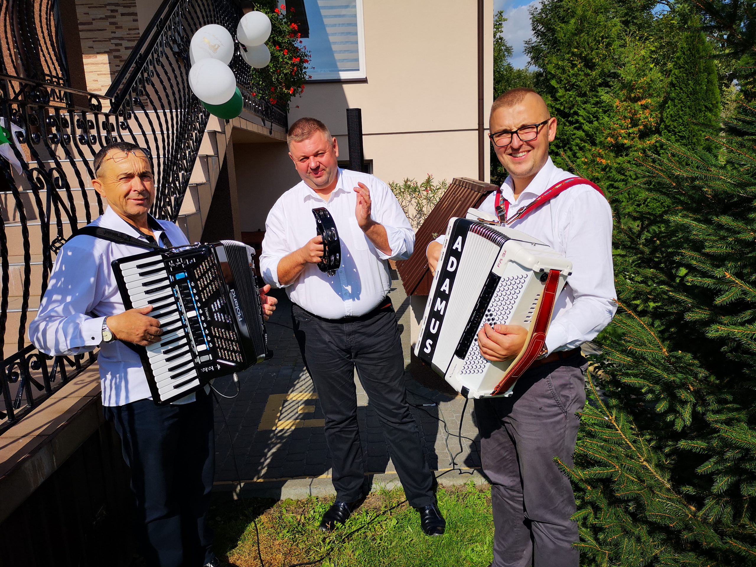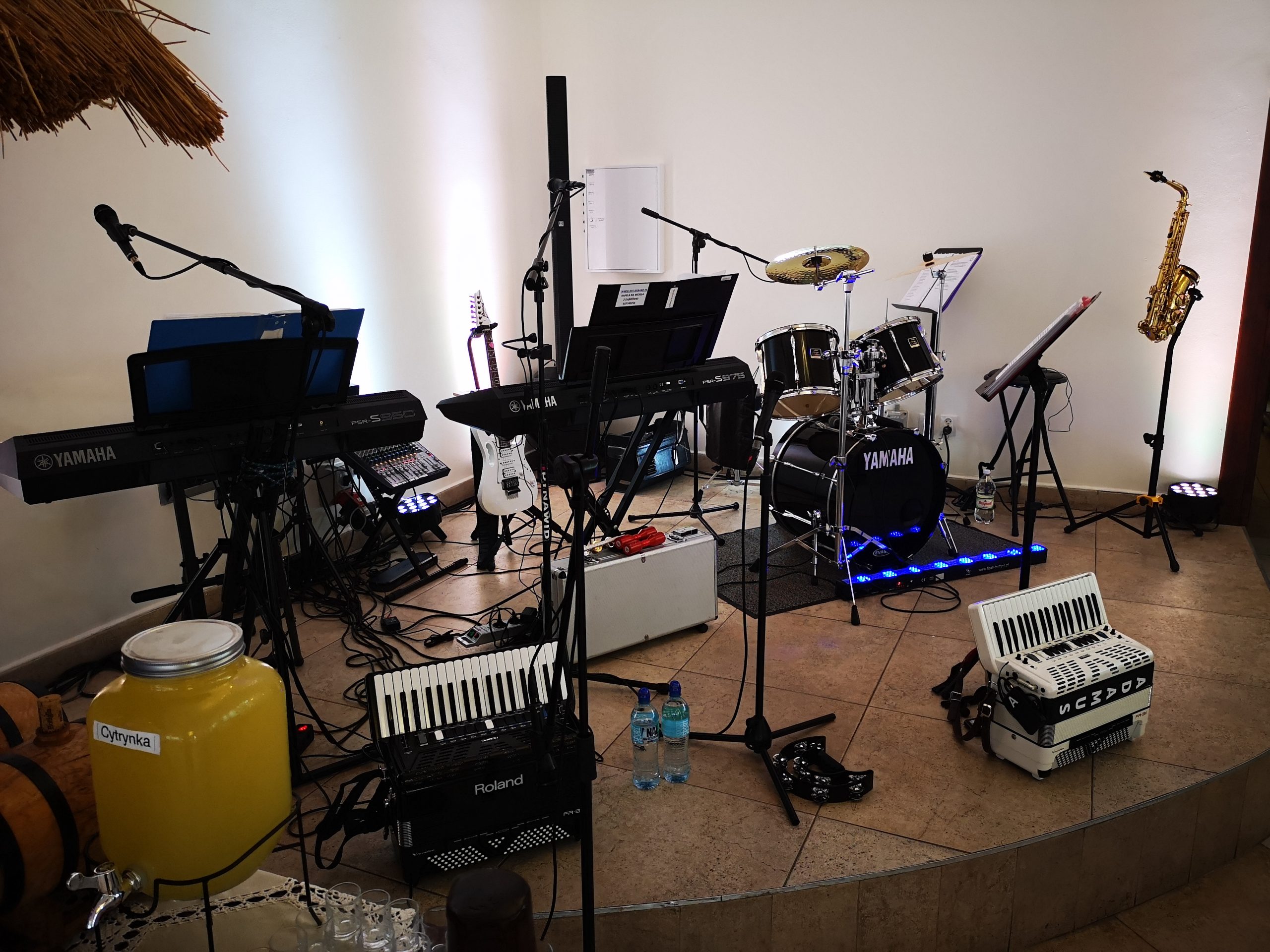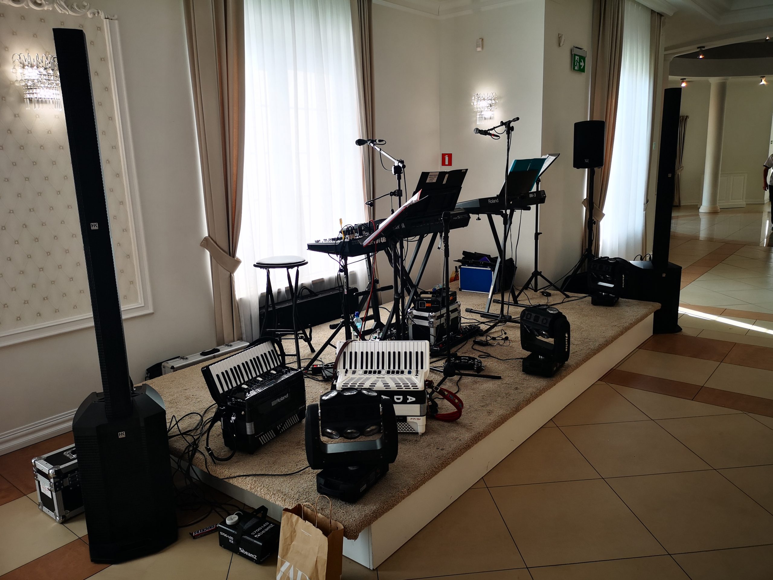 W 2021 roku dokonaliśmy inwestycji i zmiany całkowitej sprzętu nagłośnieniowego. Postawiliśmy na Markę HK AUDIO oraz systemy liniowe. Bardzo nowoczesne rozwiązanie, które w zupełnie inny sposób rozprowadza dźwięk podczas naszych występów. Nie wielkość a jakość: Bas nie dudni … niskie tony są bardzo miękkie i punktowe, a wokale czyste i docierają przestrzennie do każdego słuchacza na Sali – nie raniąc przy tym uszu nadmiernymi decybelami. Systemy bezprzewodowe pozwalają Nam prowadzić zabawę biesiadną bliżej gości, chodząc między stołami bawimy gości w taki sposób jak żaden inny zespół. Akordeony cyfrowe wprowadziły Nas na najwyższy poziom możliwości oraz świat niepowtarzalnego brzmienia. Oświetlenie Led, Ruchome Głowy, Kolorowe Lasery oraz Wytwornice Dymu mogą jedynie dodać super charakteru państwa imprezie. Ponadto posiadamy brytyjskie miksery marki SOUNDCRAFT, mikrofony niemieckiej firmy BEYERDYNAMIC, systemy bezprzewodowe SHURE oraz sprzęt YAMAHA z serii PRO, ROLAND, Gitarę elektryczną IBANEZ i inne instrumenty, które wypełnią po brzegi całą scenę.