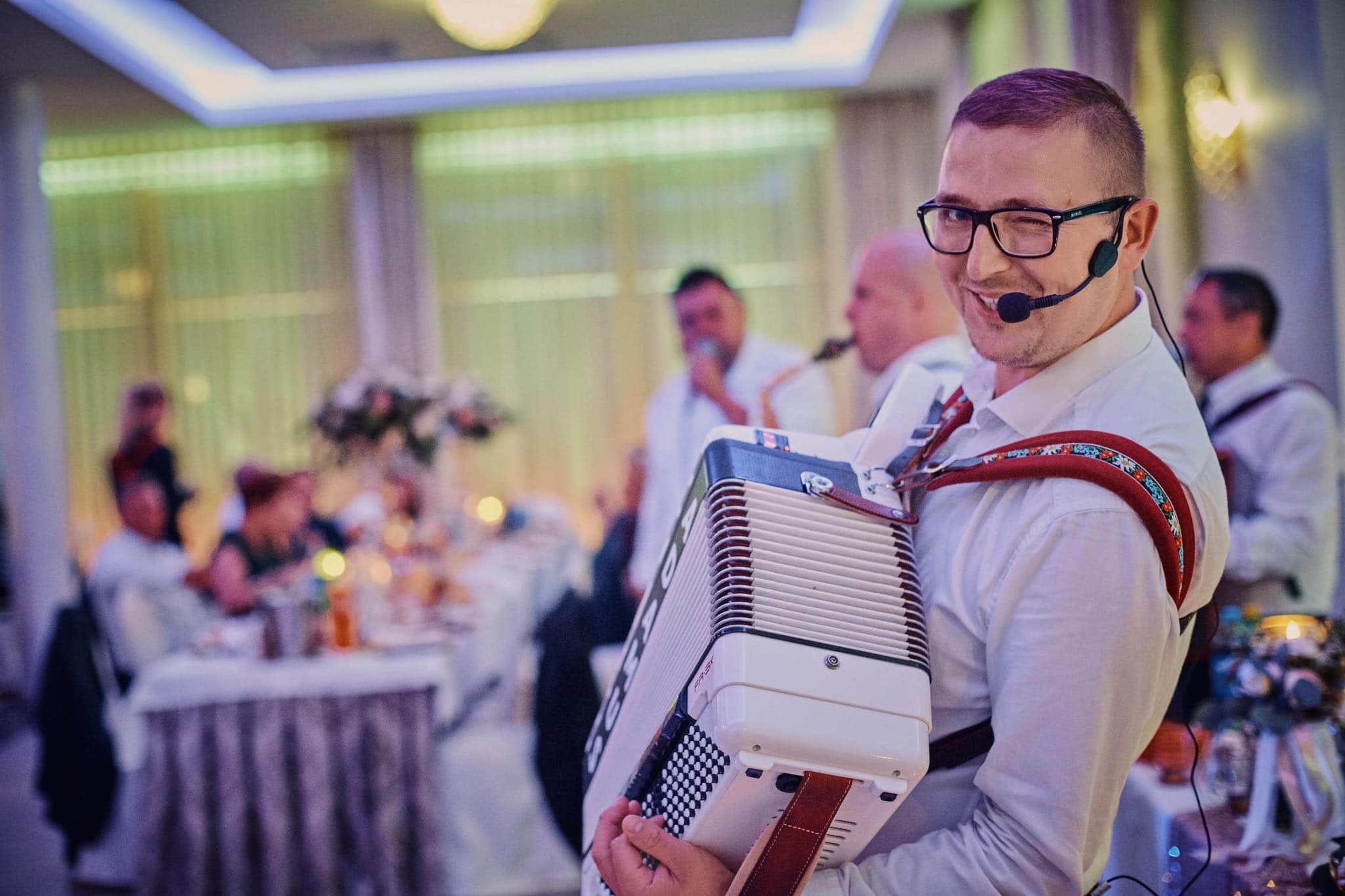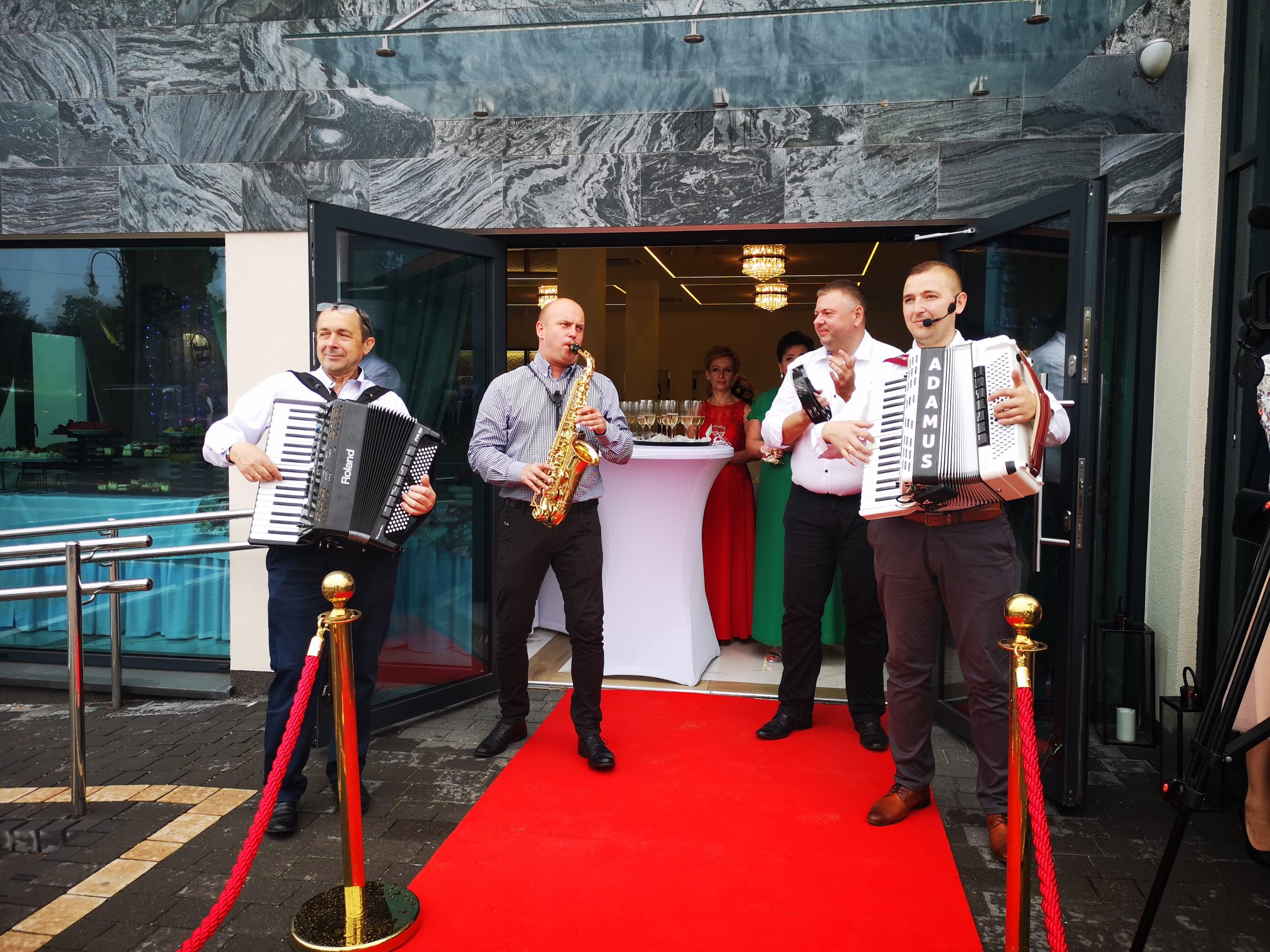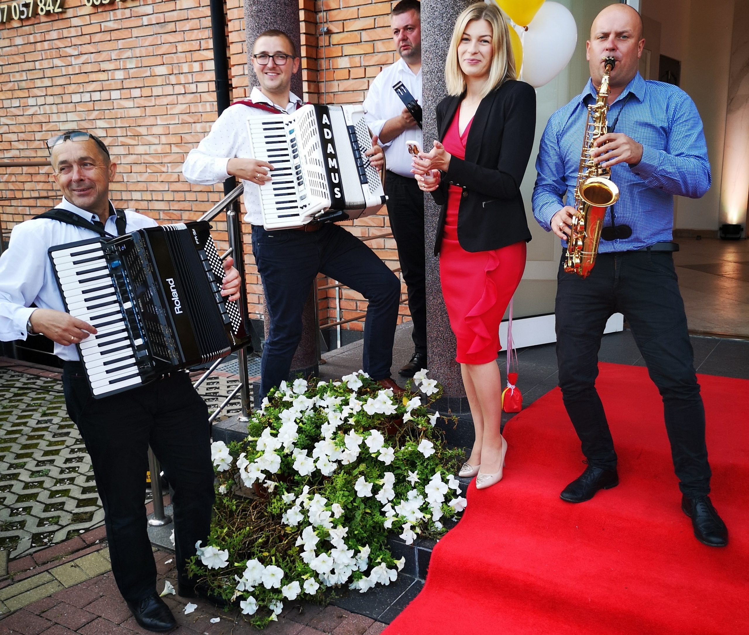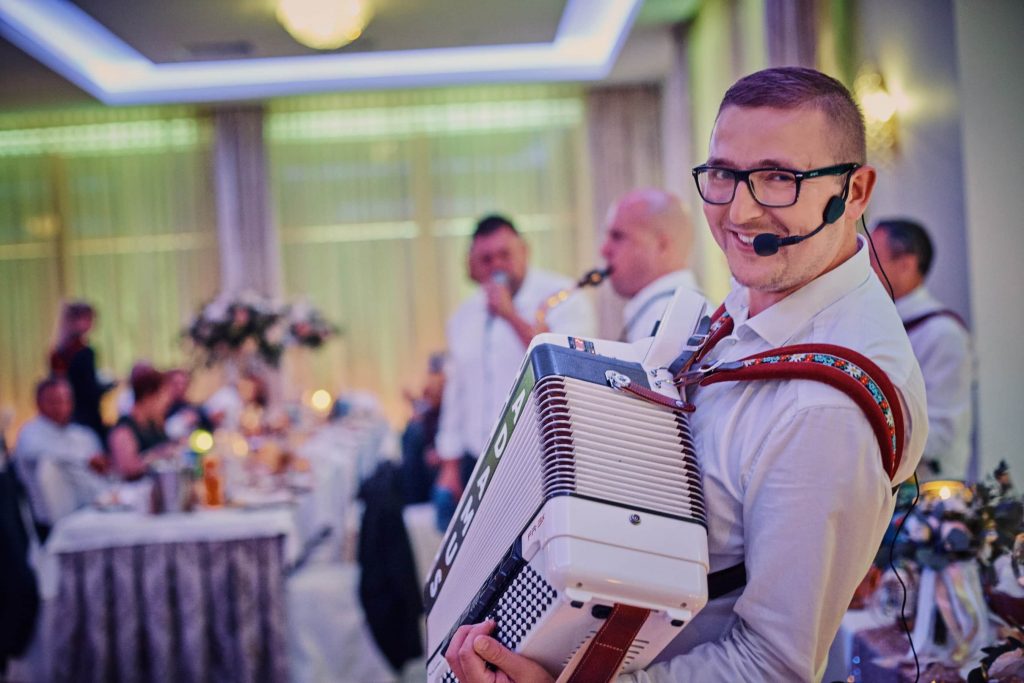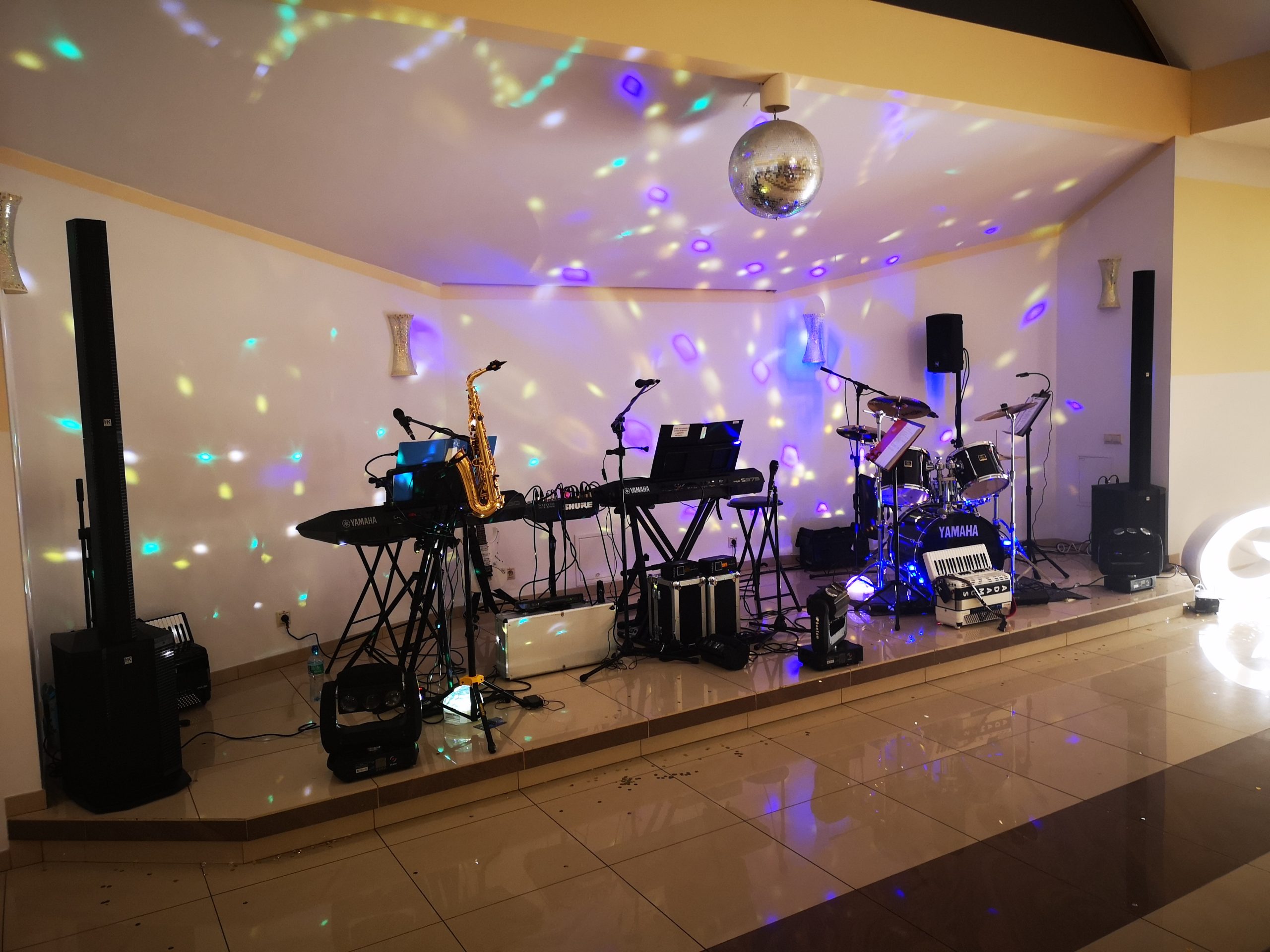 W 2021 roku dokonaliśmy inwestycji i zmiany całkowitej sprzętu nagłośnieniowego. Postawiliśmy na Markę HK AUDIO oraz systemy liniowe. Bardzo nowoczesne rozwiązanie, które w zupełnie inny sposób rozprowadza dźwięk podczas naszych występów. Nie wielkość a jakość: Bas nie dudni … niskie tony są bardzo miękkie i punktowe, a wokale czyste i docierają przestrzennie do każdego słuchacza na Sali – nie raniąc przy tym uszu nadmiernymi decybelami. Systemy bezprzewodowe pozwalają Nam prowadzić zabawę biesiadną bliżej gości, chodząc między stołami bawimy gości w taki sposób jak żaden inny zespół. Akordeony cyfrowe wprowadziły Nas na najwyższy poziom możliwości oraz świat niepowtarzalnego brzmienia. Oświetlenie Led, Ruchome Głowy, Kolorowe Lasery oraz Wytwornice Dymu mogą jedynie dodać super charakteru państwa imprezie. Ponadto posiadamy brytyjskie miksery marki SOUNDCRAFT, mikrofony niemieckiej firmy BEYERDYNAMIC, systemy bezprzewodowe SHURE oraz sprzęt YAMAHA z serii PRO, ROLAND, Gitarę elektryczną IBANEZ i inne instrumenty, które wypełnią po brzegi całą scenę.